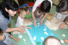 На занятие кружка второй младшей группы "Волшебные кружочки" (воспитатель Ганиева Г.Х.) были приглашены родители воспитанников, которые совместно с детьми выполнили аппликацию "Зайка" из ватных дисков. Цель данной работы - развитие творческих способностей в освоении новой техники для получения объемной аппликации, совместная деятельность родителей с детьми.