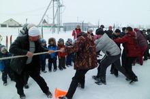Эстафету продолжили родители и воспитанники средних групп, которые участвовали в спортивном празднике "Зима". Дети встали на лыжню, рядом соревновались папы и мамы, которые ничем не отличались от олимпийцев. Игра в хоккей, перетягивание каната продолжили праздник. Дети с интересом и радостью наблюдали за отцами, которых от души поздравили с праздником. Чаепитие с вкусными блинами украсило вечер. Уставшие, но довольные возвращались дети домой. Приятно, когда собирается вся семья, соревнуются родители, , их поддерживают дети. Ведь только совместные усилия семьи и ДОУ дадут хорошие результаты в деле воспитания подрастающего поколения.