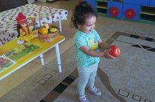 У ребят в 1 младшей группе состоялось первое знакомство с овощами и фруктами. Воспитатель Галимова Л.Ф. провела занимательную беседу о том, где они растут, чем полезны, что из них можно приготовить. Малыши с интересом рассматривали дидактический материал, муляжи овощей и фруктов. Ребята с удовольствием играли в игру "Что где растёт?".