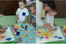 Веселое солнышко - веселыми ладошками! Занятия пальчиковыми красками это не только весело и увлекательно, но и очень полезно. Краски помогают развивать тактильные ощущения, разрабатывают моторику рук, форимируют восприятие цвета. Юным творцам очень нравится оставлять яркие отпечатки своих ладошек на бумаге.