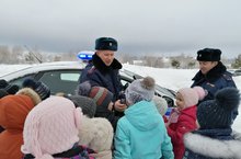 26 февраля в нашем детском саду была организована встреча с инспекторами ДПС. Сотрудники ОГИБДД рассказали о том, как должны себя вести дети на дорогах, какие дорожные знаки должны знать и что нужно делать, чтобы предотвратить дорожно-транспортное происшествие, а также дети закрепили знание правил перехода проезжей части, узнали, какие требования предъявляются к пассажирам в транспорте. Дети отвечали на вопросы, разбирали дорожные ситуации. Инспектор разъяснял детям важность правильного поведения на дороге, использования удерживающих устройств для их же безопасности. Познавательная беседа получилась очень интересной. Знакомство с сотрудниками ДПС произвело на детей неизгладимое впечатление, а особый восторг вызвала настоящая патрульная машина ДПС. Ребята внимательно слушали рассказ инспектора об оборудовании автомобиля, и каждый ребенок имел возможность включить сирену, «связаться» по рации, а также посидеть в автомобиле и почувствовать себя настоящим инспектором ДПС.