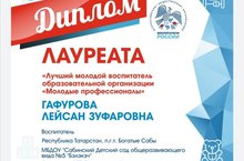 Воспитатель МБДОУ «Сабинский детский сад №5 «Бэлэкэч» Гафурова Лейсан Зуфаровна признана лауреатом VII Всероссийского конкурса «Воспитатели России» в номинации «Лучший молодой воспитатель образовательной организации «Молодые профессионалы». Поздравляем коллегу с победой, желаем дальнейших успехов, творческого роста, благополучия и счастья.