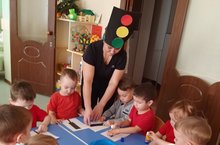 Сегодня в нашем детском саду прошло итоговое мероприятие, посвящённое изучению правил безопасного поведения на дорогах. Ребята отгадывали загадки, отвечали на вопросы. Также посмотрели инсценировку стихотворения С. Михалкова "Светофор", подготовленную детьми подготовительной к школе группы. Малыши узнали о важности соблюдения правил поведения на дорогах.В конце мероприятия было организован просмотр обучающего мультфильма из серии "Светофор собирает друзей".