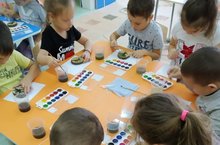 Одним из старейших видов творчества и рисунка считается роспись по дереву. Данный способ декорирования был широко распространен на Руси, с помощью красок расписывали деревянные доски, оформляли панно, подносы и шкатулки. Чтобы научиться самостоятельно декорировать деревянные предметы, нужно лишь изучить основные техники росписи. Этим – то и занимались сегодня воспитанники старшей группы совместно с воспитателем на изобразительной деятельности.