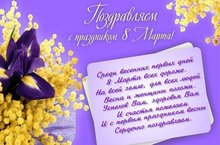 С праздником весны, очарования, красоты и женственности! Пусть каждый день будет таким, как этот: наполнен улыбками, восхищением, любовью, заботой и радостью. Будьте счастливы, ощущая себя женщинами, принцессами, королевами. С 8 Марта, милые дамы!