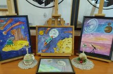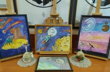Выставка рисунков, посвящённая Дню космонавтики 11.04.2022