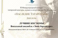Вокальный ансамбль «Энҗе бөртекләре» -Диплом «Лучшие костюмы (рук.Аксанова Л.М.);