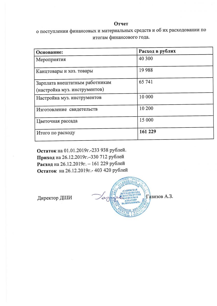 Отчет о привлечении и расходовании внебюджетных средств 2019г.