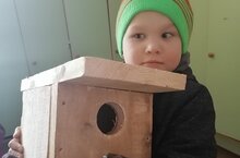 Артем вместе с папой сделали скворечник.Повесим в ближайшем парке и будем наблюдать за жизнью скворцов.