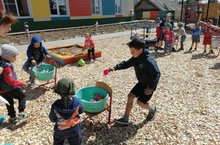 С наступлением теплых летних дней пришла пора украсить клумбы на участках детского сада цветами.