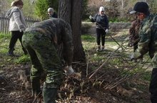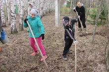 Мәктәп укучылары һәм укытучылар мәктәп тирәсен җыештырырга чыктылар...