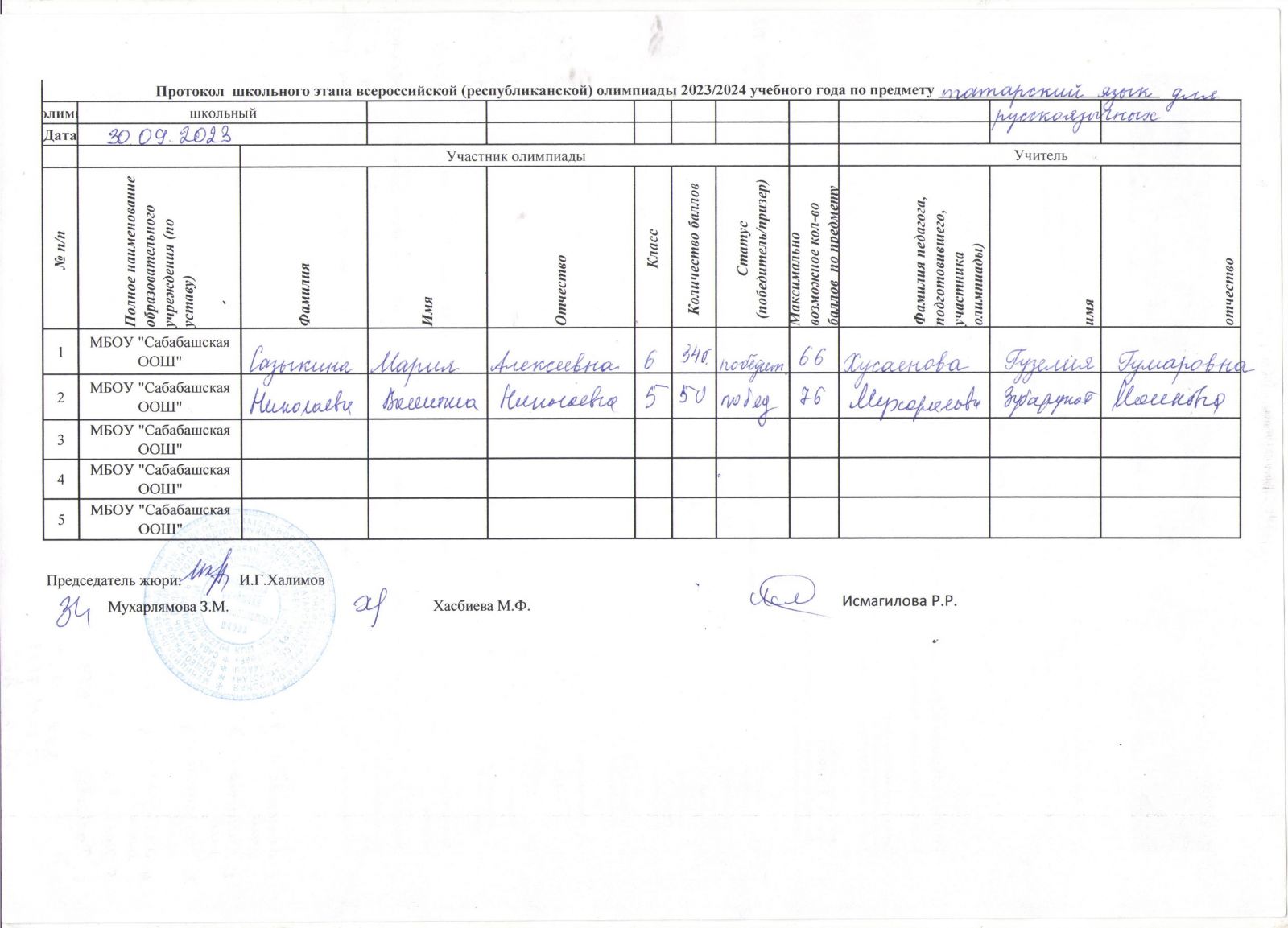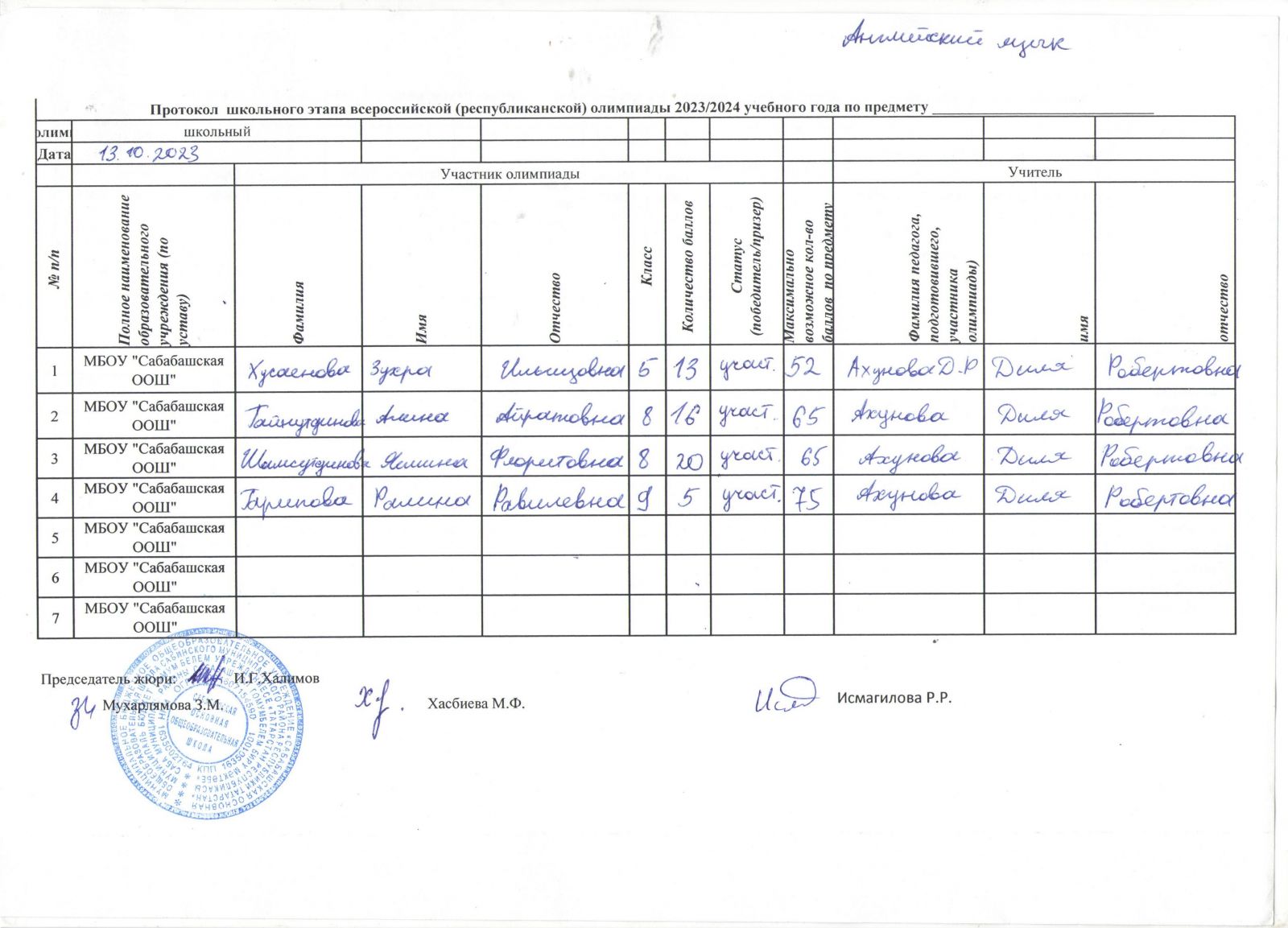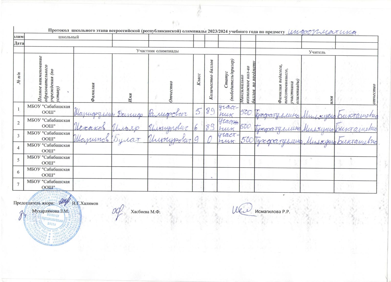 | Короткое название: | МБОУ "Сабабашская ООШ" |