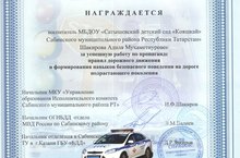 Воспитанники Сатышевского детского сада «Кояшкай» получили грамоты за участие в районном конкурсе « Я – за мир на дорогах».