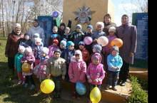 9 май - Җиңү көне уңаеннан балалар, һәйкәлгә барып, чәчәкләр куйдылар.