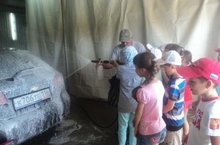 Бүген балалар ИП "Ахметшин" автомойкасына сәяхәт ясадылар. Мойка хуҗасы Ирек Ахметшин машина юу серләрен өйрәтте, машина юып күрсәтте, биредә булган җиһазларлар белән таныштырды. Балалар үзләре дәкызыксынып машина юып карадылар.Биредә балаларга бик ошады. Көн азагында көндәлек эшкә йомгак ясалып,”Иң төгәл”, “Иң чиста”, “Иң сәлатле”, “Иң кыю”, “Иң тырыш”, “Иң җитез”, “Иң талантлы”, “Иң актив” дигән номинацияләрдә җиңүчеләр билгеләнде..