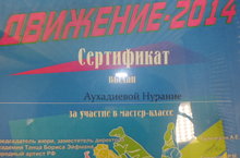 Хореография түгәрәге җитәкчесе Аухадиева Н.А. Казан дәүләт культура һәм сәнгать университеты базасында үткәрелгән "Движение -2014" мастер - классында катнашып, сертификатка ия булды. Уңышлар сезгә!