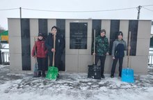 Мәктәбебезнең 5 нче сыйныф укучылары Бөек Ватан сугышында ятып калганнар истәлегенә куелган һәйкәлне кардан чистарттылар.