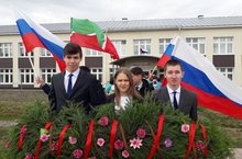 Бүген укучыларыбыз, мәктәп коллективы белән берлектә, Бөек Ватан сугышы тәмамлануга 73 ел тулу уңаеннан митингта катнаштылар. Сугыш ачысы кагылган ветераннарга, тыл хезмәткәрләренә, сугыш чоры балаларына баш иеп үзләренең чыгышларын бүләк иттеләр. Обелискка венок һәм чәчәкләр салдылар.
