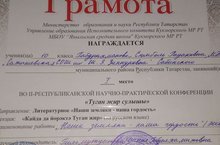 Мәктәбебезнең иң сәләтле укучысы Габдрахманова Сөмбел Кукмара районында үткәрелгән "Туган җир сулышы" дип аталган II- Республика фәнни-гамәли конференциясендә катнашып I урынга лаек булды. Җитәкчесе Гильмутдинова Д.Г.