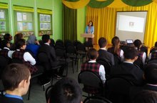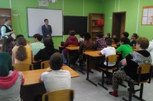 Саба башкарма комитеты вәкиле Исхакова А.Р. бүген мәктәбебездә кунакта булып укучыларга "Экстремизм һәм терроризм ", "Велосипедта юл йөрү кагыйдәләре", "Яшүсмерләр арасында хокук бозуларны кисәтү" темаларына чыгыш ясады.
