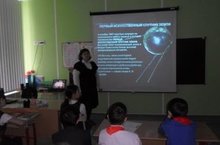 Бүген, 12 апрель,космонавтика көне. Шушы уңайдан Солтанова Р.Ф. башлангыч сыйныф укучылары белән берлектә космос,космонавтика темаларына багышланган җырлар өйрәнделәр.