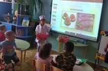 Масгутова Э.М. с детьми подготовительной группы №2 провела беседу о правильном питании. Она рассказала ребятам о пользе и значении витаминов для здоровья человека. Просмотрев презентацию они узнали, что витамины обозначаются буквами А, В, С, Д, Е, о том, что для организма человека нужны различные продукты, чтобы было хорошее настроение, гладкая кожа, здоровое тело.