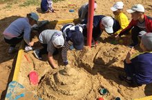 Сегодня в нашем садике состоялся конкурс пастроек "Замок из песка". Целью конкурса было создание благоприятных условий для воспитательно-образовательной деятельности с детьми в летний период. В игре с песком ребенок чувствует себя хозяином своего маленького сказочного мира и чувствует себя настоящим волшебником. Все ребята проявили большую фантазию и мастерство.