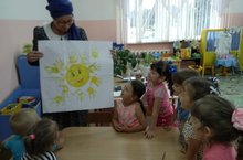 В рамках темы недели "Творим, познаем и растем!" дети второй младщей группы вместе нарисовали солнышко при помощи отпечатка детских ладошек. Такой способ рисования не только увлекательное занятие, но еще и отличный способ развития координации рук.