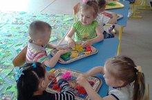 Использование игр с песком в нашем ДОУ дает возможность развивать познавательные процессы: восприятие, внимание, память, образно-логическое мышление, пространственное воображение, коммуникативные навыки, а также способствуют развитию мелкой моторики рук – при рисовании песком мы используем обе руки, порой одновременно, благодаря чему идет благотворное влияние на развитие правого и левого полушария, а также их взаимодействия.