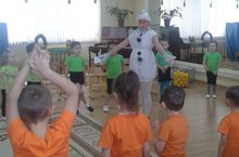 Для детей старших и подготовительных групп дети средней группы показали развлечение "Зимние забавы и игры". Дети не только играли в интересные игры, но и соревновались в ловкости, сноровке. К ним в гости пришли "Зима" и Снеговик. С ними детям стало еще веселее и радостнее.