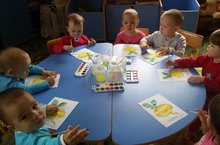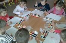 В первой младшей группе прошло первое занятие по рисованию. Дети учились правильно держать кисточки, у них началось восприятия сенсорных эталонов-цвет, форма.