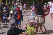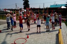 С ребятами старшей группы № 2 и № 3 провели спортивный досуг, где они состязались в занимательных эстафетах. С помощью считалок выбирали ведущих и играли в подвижные игры. Праздник закончился дружеским, ритмичным флешмобом.