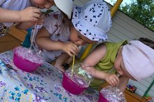 Җәй-күңелле бәйрәмнәр вакыты. Балалар бакчасында бәйрәм-ул шатлык һәм күңел ачу белән тулы көн. Бүген балалар өчен күңелле тамаша, сабын пузырьләре белән уен оештырылды. Балалар төрле төстәге пузырьларны бик теләп күзәттеләр, шатлыкларыннан сикерделәр, кычкырдылар, кул чаптылар. "Пузырь тотыгыз", "Кемнең пузыре зуррак" конкурслары бәйрәмне күңелле , кызыклы һәм белемле итәргә мөмкинлек бирде.