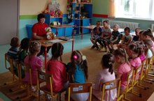 В нашем детском саду состоялась встреча с сотрудниками МЧС. Они провели мероприятие, главная цель сотрудников МЧС обучить подрастающее поколение правилам безопасного поведения, предотвратить возможные экстремальные ситуации.
