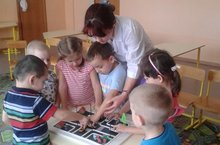 Занятие началось с того, что педагог-психолог с детьми получили конверт, в котором лежала схема прохождения полосы препятствий в Лесную школу (нужно было проползти под столом, обойти змейкой стулья и т.д.). После того как дети прошли полосу препятствий и попали в Лесную школу, психолог прочитала сказку "Ленивец", и вместе поделились впечатлениями от услышанного. Сделав пальчиковую гимнастику, приступили к выполнению заданий "Медвежата", "Логический квадрат", "Прятки с картинками" в рабочих тетрадях. Поиграли в игру " Кричалки-шепталки-молчалки", "Волшебное кольцо". И в конце занятия подвели итог, обсудили какие игры им понравилось и запомнилось больше всех.