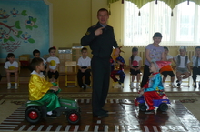 С целью формирования у детей основных навыков безопасного поведения на улицах и дорогах города в подготовительной группе прошло развлечение на тему "Школа светофорных наук". На этом мероприятии приняли участие инспектор по пропаганде ОГИБДД капитан полиции Насибуллин И.Д. и начальник Кукморского филиала ГКУ "Дирекция финансирования науч. и образ. программам БДД РТ" Сабирова З.Р. Ильнур Дамирович провёл беседу с детьми и проверил их знания по ПДД. В конце праздника гости поздравили детей и раздали подарки.
