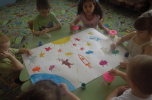 Коллективная работа детей 2 младшей группы №2 на тему: "Космос" 12.04.2013 В космосе так здорово! Звёзды и планеты В чёрной невесомости Медленно плывут! В космосе так здорово! Острые ракеты На огромной скорости Мчаться там и тут.