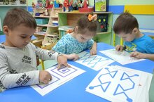 Воспитанники старших, подготовительных групп приняли участие в республиканской олимпиаде для дошкольников "Учёный малыш", организованный «Республиканским олимпиадным центром» Министерства образования и Науки РТ. Участникам олимпиады предложено 11 заданий, которые они должны выполнить по рисункам, схемам, готовым образцам. При выполнении работы детям необходимо было сравнивать, выделять свойства предмета, обобщать и делать выводы, классифицировать.