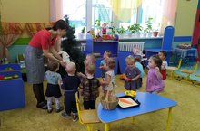 Икенче номерлы нәниләр төркемендә интеграцияләнгән әйләнә-тирә дөнья белән танышу һәм традицион булмаган манный ярмасы белән рәсем ясау буенча "Дуслар белән сукмак буйлап кышкы урманга" дәресе үтте. Балалар урман җәнлекләрендә кунакта булдылар, алар белән төрле уеннар уйнадылар. Аларга аеруча манный ярмасы белән уен ошады. Манный ярмасы белән рәсем ясау -кызыклы эш һәм балалар өчен бик файдалы, чөнки ул вак моторика чукларын, фантазияне, хәтерне һәм аның хәрәкәт координациясен үстерә.