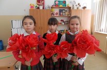 В преддверии Международного праздника Дня матери, активисты детской организации «Дулкын» МБОУ «Шеморданский лицей в Сабинском муниципальном районе РТ» подготовили и провели праздничный концерт «Как прекрасно слово мама!». Следопыты лицея, учащиеся начальных классов, решили нести так же свою лепту в украшении актового зала к концерту. Под руководством учителя начальных классов Хуснутдиновой Румии Рафитовны изготовили красивые объемные цветы.