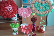 В нашем лицее на кружке «Мастерская чудес» (рук. Хуснутдинова Р.Р.) девочки тоже постарались. Они изготовили из гофрированной бумаги и разноцветных салфеток топиарий в форме сердца. Получились очень оригинальные подарки.