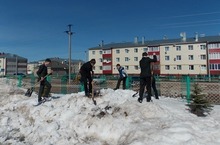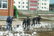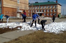 На дворе уже середина апреля, а солнце никак не может растопить снег. Ученики 8в класса решили помочь солнышку и взяли в руки лопаты. Таким образом мальчишки приняли участие в акции «Чистый дом, чистая школа, чистый поселок», объявленной в нашем лицее.