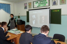 24.10.13. на классном часе учащиеся 9 А,Г классов (кл.рук.Сабирова Р.А., Садыйкова Л.Р.) прошла познавательная беседа «Альфред Нобель и нобелевские лауреаты в литературе».Её провела заведующая Шеморданской поселковой библиотекой Л.Е.Глебова. Она рассказала о насыщенной жизни шведского предпринимателя и изобретателя, учредителя самой престижной премии планет. Рассказ сопровождался презентацией.