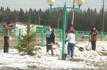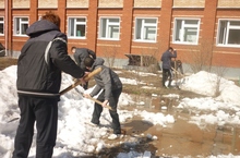 18 апреля, в четверг, учащиеся 8Б класса выходили на пришкольный участок, раскидывали снег. Здорово поработать с одноклассниками на свежем воздухе!