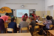 В Шеморданском лицее третий день (среда, 10.04.13.) стажировочной площадки. Первым прошёл открытый урок русского языка в 7Б классе по теме «Междометие как часть речи». Участники стажировочной площадки остались довольны уроком. Их заинтересовал новый учебник Львовой, по которому занимаются семиклассники.