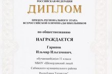 Поздравляем ученика 11А класса Гарипова Ильмира - Призера Регионального этапа всероссийской олимпиады школьников по обществознанию и учителя обществознания Емельянову Ляйсан Мазитовну с Победой! Желаем крепкого здоровья, успехов в учебе и дальнейших побед!