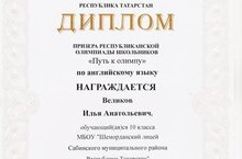 Поздравляем ученика 10Б класса Великова Илью - Призера Республиканской олимпиады школьников "Путь к Олимпу" по английскому языку и учителя английского языка Степанову Олесю Валерьевну с Победой! Желаем крепкого здоровья, успехов в учебе и дальнейших побед!