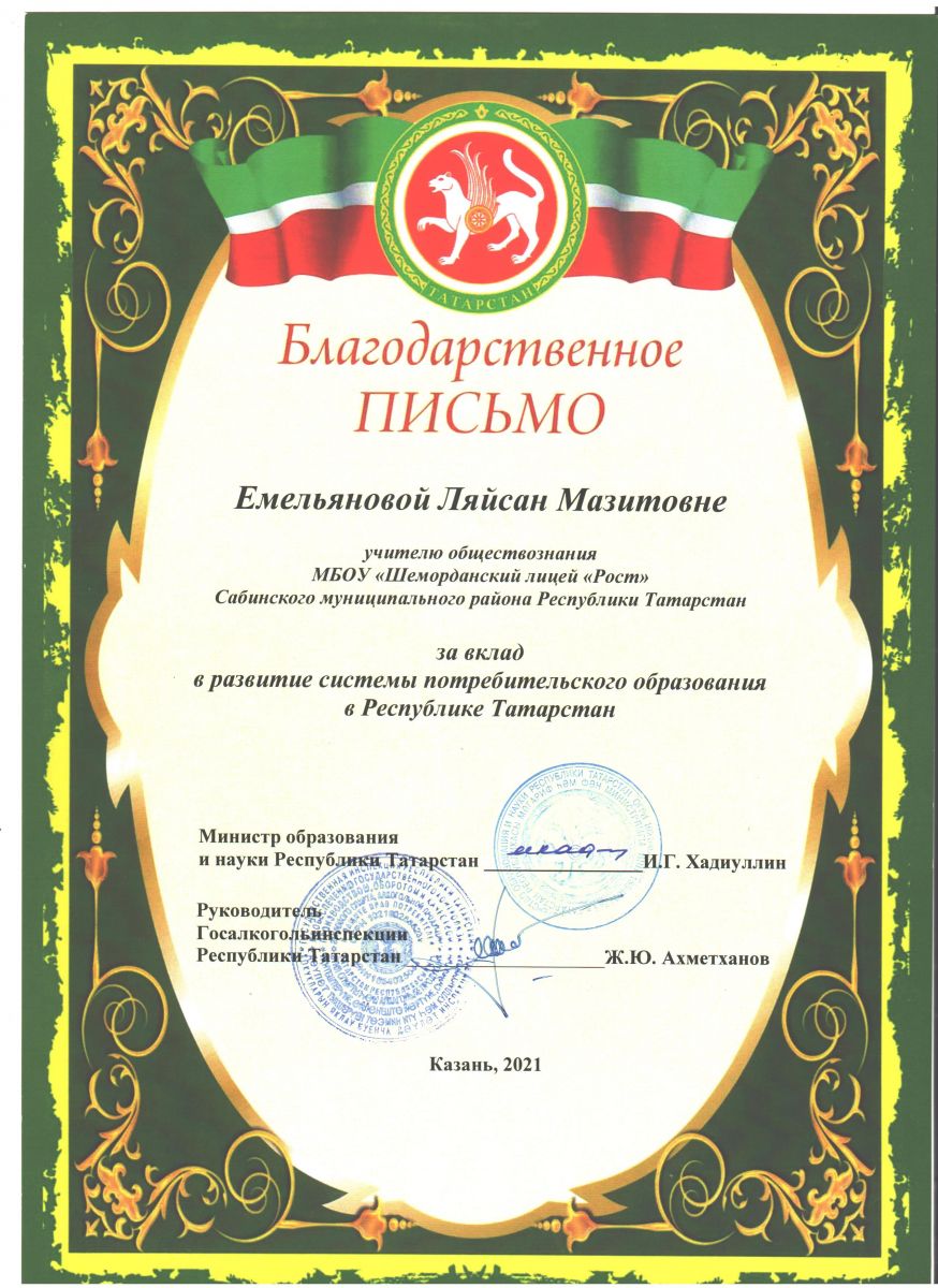 Муниципальное бюджетное общеобразовательное учреждение "Шеморданский лицей "Рост" Сабинского муниципального района Республики Татарстан"