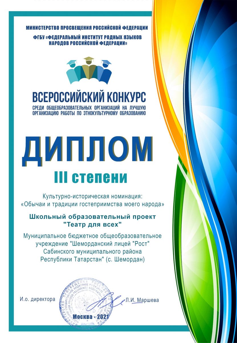 Муниципальное бюджетное общеобразовательное учреждение "Шеморданский лицей "Рост" Сабинского муниципального района Республики Татарстан"