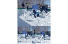 Балаларга хезмәт тәрбиясе бирү максатыннан, бергәләп территориядәге карны таратабыз.